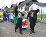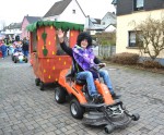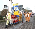 Der Weg vom Dorfplatz zur Mehrzweckhalle wurde von vielen Narren und Kindern umsäumt. Kaum jemand war nicht maskiert, oder verkleidet, daran war zu erkennen, dass die Marienrachdorfer Karnevalsjecken sind. Den größten Spaß hatten die Kinder, denn von den Bollerwagen flogen große Mengen Kamelle und anderer Süßkram in die Menge und wurden eifrig von den Kindern aufgesammelt. Für die Erwachsenen gab es flüssiges Brot als Belohnung, unter anderem Bier und Schnäpschen.