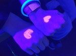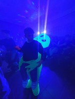 Die Schwarzlichttattoos und Leuchtarmbänder, die kostenlos genutzt werden konnten, erstrahlten besonders und sorgten für den zusätzlichen Leuchteffekt. Bei dem Spiel "Bier-Pong" (natürlich in einer alkoholfreien Variante) kam richtig Stimmung auf. Jeweils zwei Mannschaften traten gegeneinander an und mussten versuchen, den Ping Pong Ball in die mit Wasser gefüllten Becher der gegnerischen Mannschaft zu treffen. Der Verlierer musste dann erst Salz lecken und anschließend in eine saure Zitrone beißen.