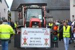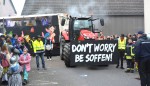 Der Fastnachtsumzug setzte sich aus einem bunten Gemisch privater Fußgruppen und Motivwägen zusammen. Die Fußgruppen ließen bei der Gestaltung ihrer Fantasie freien Lauf und zogen unter anderem als "Ärzte ohne Grenzen" und" Panzerknacker" durch die Straßen. Die Gruppe vom Wiesenhof Aller aus Maxsain nahm mit ihrem Wagen an einer Bauerndemo teil und betätigte sich gleichzeitig als "Klimakleber". Dazu hatten sie ein großes Plakat vor ihrem Traktor angebracht, auf dem zu lesen stand: Wenn ihr unsere Forderungen nicht erfüllt, dann kleben wir euch unsere Frauen auf die Straße.