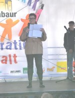 Sämtliche Parteien, die sich an der Kundgebung beteiligten, waren vertreten und nutzen die Gelegenheit, durch ihre Sprecher von der Bühne aus, ihre Statements abzugeben. Alle Redner sprachen voller Leidenschaft und echter Sorge von dem, was sich zurzeit in Deutschland abspiele. Einige gingen auch selbstkritisch mit sich und ihren Parteien ins Gericht, weil die negative Entwicklung nicht früh genug erkannt und entsprechend thematisiert worden sei.