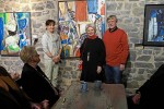 Brigitte Struif, die auf zahlreiche Ausstellungen im In- und Ausland verweisen kann (www.brigitte-struif.de/), erklärt in ihrer Ansprache die Entstehungsgeschichte einiger Werke und welche Motivationen oder Interpretationen mit ihnen verbunden sind: Das gegenständliche "Liebespaar in Bodrum" ist Thema, ebenso das abstrahierte vierteilige Bild "Transmontan" oder das abstrakte "Ars Vivendi". Es bleibt ausreichend Zeit, sich mit ihr und untereinander auszutauschen - in einer lebhaft und aufgeschlossen Atmosphäre. Die Gemälde können erworben werden, die Preise sind vermerkt.