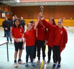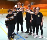 Dann war es endlich so weit, Krekel konnte die Platzierungen bekannt geben, es sprach für die Fairness und Kameradschaft untereinander, dass auch die weiter hinten platzierten Teams sich über viel Beifall freuen durften. Ohrenbetäubender Jubel brach verständlicherweise bei den Siegerteams aus, die sich über einen schönen Pokal und eine große Dose Haribo Gummibärchen freuen durften.