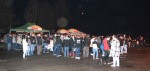 Tatsächlich war alles auf den Beinen, was sich irgendwie fortbewegen konnte. Familien mit "Kind und Kegel" ihren Vierbeinern, waren anzutreffen. Es ist nicht übertrieben, zu behaupten, dass das Osterfeuer einen Mix aus Familienfest und Kirmes darstellte. Entsprechend positiv kann die Stimmung beschrieben werden, zumal die angekündigten Regenschauer ausblieben. Sicherheitshalber hatten die Organisatoren zwei größere Partyzelte aufgebaut, unter denen Tische und Bänke aufgestellt waren, um für alle Fälle gewappnet zu sein. Einige Stehtische waren dicht umlagert, weil die Besucher ihre Getränke, unter anderem wurde Glühwein ausgeschenkt, dort ihre Getränke abstellen konnten. Die Gourmets unter den Besuchern, durften sich an heißen Siedewürstchen erfreuen. Somit war alles bestens vorbereitet, um eine schöne Osterfeuer-Party zu feiern.