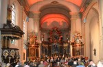 Im wunderbaren Ambiente der Pfarrkirche Mariä Himmelfahrt präsentierte sich der Gospelchor "Rise Up" unter dem Dirigat ihrer Chorleiterin Birgit Keil, in absoluter Hochform und begeisterte viele Zuschauer mit vorwiegend englischen Pop - und Gospelsongs. Die Auswahl der Songs berührte die Zuschauer in dem prunkvollen Kirchenschiff von Beginn an und erzeugte Festivalatmosphäre, die durch die Lebhaftigkeit und ausdrucksvollen Interpretationen bereits während des Konzerts großen Beifall erzeugte und am Ende des Konzerts sogar Zugaberufe durch die Kirche hallten. "Come let us Sing", "Let´s praise the Lord" waren der Gospelmusik gewidmet, während "Let´s get loud" von Jennifer Lopez und "Put a little love in your heart" eher dem Rock zuzuordnen waren. Aus dem Film "König der Löwen" erzeugte "Rise Up" Gänsehautmomente mit den Hits von Sir Elton John "Circle of Life" und "Can you feel the love tonight". Sehr berührend und mit großer Hingabe gesungen, gefiel die Interpretation von "Halleluja" aus dem Film "Shrek". Mit "Blessed be Your Name" fand das Konzert einen krönenden Abschluss, denn dieser Song riss alle Zuschauer mit, die sich von ihren Sitzen erhoben und laut klatschend eine super Stimmung erzeugten.