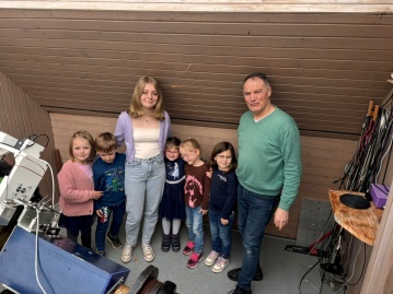 Gemeinsam mit Projektleiterin Kristina Buchner, die diese Arbeit als Abschluss ihrer Erzieherausbildung durchführte, machten sich die fünf Kinder auf den Weg in die Sternenwarte nach Sessenbach, wo sie Leiter Klaus Völkel voller Vorfreude begrüßte. Ausgerüstet mit einem anschaulichen Vorwissen, erkundete die Gruppe die Sternenwarte und staunte über das große Planetarium. Die Kinder ließen sich alles erklären und durften durch das 500 Kilogramm schwere Teleskop die Sonne beobachten. Begeistert von den unzähligen neuen Eindrücken und voller Stolz bedankte sich die Gruppe für die Möglichkeit des Besuches und alle freuten sich über kleine Geschenke. In einem Punkt waren sich die Kinder zum Schluss einig: "Wir wollen alle zusammen mal richtig in den Weltraum fliegen!" (PM)
