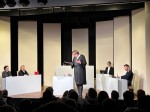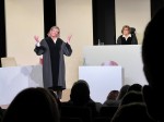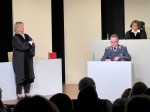 Nach der Pause die Plädoyers der Staatsanwaltschaft und der Verteidigung. Ein kleiner Exkurs zu diesem Premierenabend ist notwendig. Verteidigerin Biegler musste auf Grund Krankheit der Schauspielern Myriam Gawlitta umbesetzt werden. Und so wurde aus Frau Verteidigerin Biegler, Herr Verteidiger Biegler. Volker Müller-Strunk tauschte seine Stellung als Regisseur gegen die eines Schauspielers. Es zeigte sich, das Lob kam mehrfach aus dem Publikum, dass er, trotz Skript in der Hand, diese Rolle perfekt begleitete. Zurück zur Entscheidung, die eindeutig ausfiel. Nur wie sie ausfiel, das bleibt geheim, auch wenn die Abstimmung selbst nicht geheim durchgeführt wurde. Der letzte Akt, die Verkündung des Urteils. Auch wenn der Urteilsspruch ein Finale bedeutet, der Prozess des Nachdenkens wird bei vielen nach der Aufführung noch nicht beendet gewesen sein.