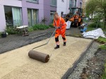 Unter den Augen der begeisterten Heimbewohner entstand die Boule-Bahn in gerade einmal fünf Arbeitstagen: Unter der Anleitung ihres Ausbildungsleiters und Projektbetreuers Gerd Langkavel packten die Azubis ordentlich an: Zunächst wurde die Fläche der 10 Meter langen und 2,80 Meter breiten Boule-Bahn abgesteckt, dann mussten Pflastersteine herausgeholt und die abgesteckte Fläche mit dem Bagger ausgeschachtet werden. Im Anschluss setzten die Azubis rund 26 laufende Meter Randsteine und verfüllten die Baugrube mit acht Tonnen Schotter als untere Frostschutzschicht. Nach dem Abrütteln der Schotterfläche schaufelten die angehenden Straßenwärter noch einmal vier Tonnen groben Splitt sowie drei Tonnen feinkörnigen Splitt, sprich den Boule-Sand, auf die Fläche der Bahn. Sorgfältig walzten sie die Bahn mehrfach ab. Zum Schluss pflasterten die Azubis die Fläche wieder bei und verfüllten die Ränder mit Mutterboden. Fertig! "Unsere Jungs haben das sehr gut gemacht. Das ist die erste Boule-Bahn, die wir gebaut haben. Und anders als auf der Autobahn ist es hier schön ruhig", sagt Betreuer Gerd Langkavel schmunzelnd.