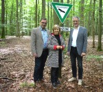 Am Beginn der Kernzone des Naubergs informiert ab sofort eine große Hinweistafel auf Besonderheiten in dem Naturschutzgebiet. Einige Meter weiter enthüllte Ministerin Eder, zusammen mit mehreren am Verfahren Beteiligten, das Hinweisschild, dass der Nauberg nun amtlich als Naturschutzgebiet ausgewiesen ist.