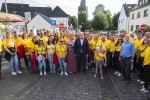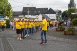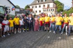 Bevor die Mitglieder des Kirmesvereins gemeinsam das Kirmeslied sangen, forderte der Erste Vorsitzende Tobias Siebenaller die Bevölkerung auf, dem wunderschönen Empfang gleich mit zum Festplatz zu kommen. Der Kirmesbaum wurde wieder geschultert und weitergetragen zur Kirmeswiese, wo er mit Muskelkraft in die Senkrechte gestellt wurde.
