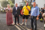 Das nächste Highlight für das Kirmespaar bestand im traditionellen Baumaufstellen am Samstagabend. Auf einem mit Blumen und Ballons geschmückten Traktor-Sofa wurden Sebastian und Luisa in die Innenstadt gefahren. Der prächtige Baum stammt in diesem Jahr aus dem Märkerwald. Der Stamm wurde traditionsgemäß von den Kirmesmännern auf deren Schultern zur Stadtverwaltung getragen, wo Stadtbürgermeister Thomas Vis den vielköpfigen Dierdorfer Kirmesverein empfing. Vis dankte den Aktiven für ihren zuverlässigen Einsatz sowie dem Musikverein Herschbach für die musikalische Begleitung.