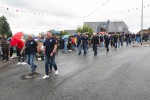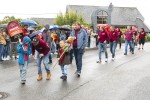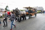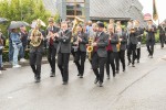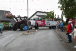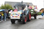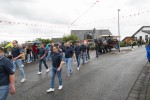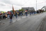 Pünktlich zum Start des Festumzugs am Sonntagnachmittag setzte ein leichter Regenschauer ein. Dadurch ließen sich weder Aktive noch Zuschauer verdrießen. Am Zugweg hatten Dorfbewohner Verkostungsstände aufgestellt, die Burschen und Mädels im Zug waren mit reichlich Bier versorgt. Begleitet von Autos der Freiwilligen Feuerwehr Oberraden-Straßenhaus, zogen die Oberradener und Delegationen befreundete Burschenvereine mit Musikbegleitung durch das Dorf.
