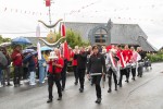 Festumzug von Feuerwehrautos begleitet