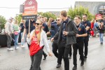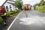 Nach einigen Minuten war der Regenschauer wieder vorbei. Die Feuerwehr betätigte sich als Straßenreinigung und spritzte die Pferdeäpfel von der Straße. htv