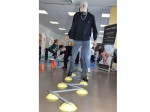 In Workshops machten sich drei Kfz-Klassen und eine Zahntechniker-Klasse, alle im ersten Lehrjahr, mit einem Balancezirkel vertraut, stellten sich einem kniffligen Ernährungsquiz, erlebten Rauschbrillen und einen Kurzvortrag über Suchtprävention und ließen sich auf eine Achtsamkeitsübung ein. Die Sportwissenschaftler Inga Reiss und Marc Bischoff leiteten die Azubis an. "Wer gesund alt werden will, muss früh anfangen", motivierte Bischoff die beiden Kfz-Azubis Denise Schräder und Tim Hammes.