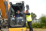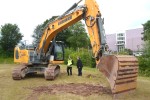 Dann endlich kam die große Stunde von Schulleiter Carstensen, dem es nach einigen Versuchen tatsächlich gelang, mit der riesigen Baggerschaufel in die Erde zu dringen, die Schaufel mit Erdreich zu füllen und unter dem Beifall der Gäste ausschütten. Damit war der Spatenstich der etwas anderen Art vollzogen. Der Startschuss für den Bau des 29-Millionen-Euro-Projektes ist somit gefallen.