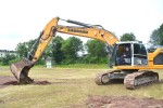 Nach großer Baustelle sah der Bauplatz für den Neubau wahrlich nicht aus, denn auf dem riesigen Areal stand lediglich besagter Bagger. Deshalb konnte sich Landrat Schwickert auch nicht die Bemerkung verkneifen, dass er froh sei, wenigstens einen Bagger zu sehen.