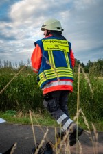 Die Feuerwehrkollegen aus Kleinholbach/Girod sicherten die Unfallstelle, löschten das Motorrad erneut und kümmerten sich um auslaufende Betriebsstoffe. Sie unterstützten zudem das DRK bei der Versorgung der "Verletzten". Der Zweck dieser Übung bestand darin, den Umgang mit einer akuten dynamischen Lage zu trainieren. Sie diente als Prüfung der seit Jahresbeginn begonnenen Ausbildung in "taktischer Medizin" im DRK OV Nentershausen.