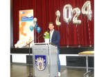 An die anwesenden Absolventen richtete Geimer die Frage, wer in seinem Ausbildungsbetrieb übernommen und dort weiterbeschäftigt werde. Eine erstaunlich große Anzahl der Absolventen hob die Hand, was Jens Geimer sichtlich erfreute. In seiner Laudatio gab Jens Geimer den stolzen Absolventen wörtlich mit auf den Weg: "Denken Sie daran, dass Bildung nicht nur ein Mittel zum Zweck ist, sondern ein Schlüssel zu neuen Möglichkeiten und Herausforderungen. In einer Welt, die sich ständig verändert und in der neue Technologien und Arbeitsmethoden rasch Einzug halten, ist lebenslanges Lernen zur unverzichtbaren Norm geworden". Passend zur Laudatio von Jens Geimer spielte das musikalische Duo den Welthit von ABBA "I have a dream".