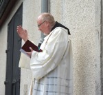 Trotz anfänglicher Regenschauer fand die Traktorensegnung im Kloster Marienstatt doch noch bei Sonnenschein statt, als kurz vor Beginn des Gottesdienstes das Wetter urplötzlich aufklarte. Pater Ignatius leitete den Gottesdienst und die Traktorensegnung unter einem strahlend blauen Himmel, nachdem er um göttliche Hilfe gebeten hatte.