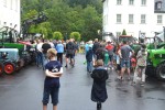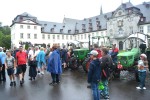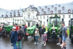 Dabei sah es etwa eine halbe Stunde vor Beginn der Traktorsegnung eher mau aus, denn nur wenige der PS-starken Modelle befanden sich auf dem Gelände. Doch urplötzlich kamen sie aus allen Richtungen angeknattert und füllten den Platz vor dem Hauptgebäude des Klosters vollständig aus. Viele bekannte Fabrikate, unter anderem Lanz, Deutz, Eicher, Fendt, John Deere, Hanomag, MAN und McCormick waren zu bewundern. Darunter viele alte Modelle aus der Nachkriegszeit, die von ihren Besitzern liebevoll gehegt und gepflegt und überwiegend nur noch in der Nebenerwerbslandwirtschaft eingesetzt werden. Neben den Traktoren standen ihre Fahrer und auch Mitfahrer, teilweise durchnässt, wenn sie für unterwegs keine Regenkleidung mitgenommen hatten.