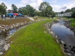 Drei Dinge waren allen Beteiligen von Anfang an wichtig: Die Renaturierung sollte den Hochwasserschutz erhöhen, den Lebensraum von Tieren verbessern und das Gewässer für die Menschen – vor allem für Kinder und Jugendliche – erlebbar machen. Letzteres hat schon bei der Eröffnung funktioniert, denn während der Feierlichkeit zogen sich einige Kinder die Schuhe aus und spielten im Bachbett, auf den Steinen und der Insel.