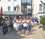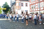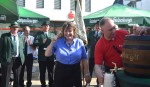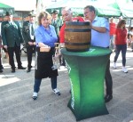 Angeführt von dem Musikverein Heiligenroth, begaben sich die Teilnehmer der Eröffnungsfeier durch die Kirchstraße hin zum Konrad-Adenauer-Platz. Auf Melanie Leicher wartete dort der obligatorische Fassbieranstich, auch dieser traditionelle Akt war eine Premiere für sie. Entgegen ihrer ersichtlichen Anspannung gelang es ihr unter dem Beifall der Zuschauer, den Zapfhahn mit drei kräftigen Schlägen in das Fass zu treiben, ohne dass kostbares Nass durch die Gegend spritzte. Das Freibier fand reißenden Absatz, kein Wunder, wurde es doch auf keinem Deckel notiert. Zur Einstimmung unterhielt weiterhin der Musikverein Heiligenroth, bevor das eigentliche Abendprogramm begann und immer mehr Menschen in die Innenstadt strömten.