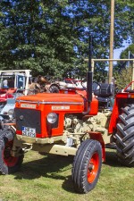 Kleine Oldtimer-Traktoren, zum Teil noch mit Antriebskurbel und etwas größere Youngtimer-Traktoren füllten den Brunnenplatz, einige neue Großgeräte hatten sich dazugemogelt.