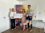 Hachenburg. Der schöne Geldsegen sorgte für große Freude beim Ambulanten Kinder- und Jugendhospizdienst Westerwald. Der Dienst, der unter dem Dach der Deutschen Kinderhospiz Dienste agiert, konnte gleich zwei Spendenscheck-Übergaben feiern. Insgesamt wurden mehr als 5.500 Euro für die gemeinnützige Arbeit mit schwerstkranken Kindern und Jugendlichen gespendet. Die Koordinatorin des Dienstes, Doro Meurer, strahlte mit Bärenbotschafter Hope um die Wette bei der Entgegennahme der symbolischen Schecks.