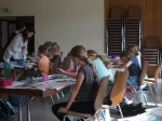 Wie schon bei vorherigen Aktionen förderten Übungen mit Farbe und Pinsel die Kreativität der jungen Teilnehmer. Dabei wurde auf gegenseitige Unterstützung und Respekt gegenüber den Ideen anderer geachtet. Den Kindern wurden keine Grenzen in ihrer Ausdrucksweise gesetzt, sowohl auf Papier als auch später auf Leinwand.