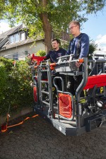 In der Brückenstraße musste in einem Innenhof mit der Drehleiter ein Rollstuhlfahrer vom Balkon im ersten Stock gerettet werden. Er wurde im Rollstuhl in den Korb gefahren und sicher im Hof abgesetzt. Im Vorfeld musste überlegt werden, wie die Drehleiter am geschicktesten zu platzieren ist. Hier war Teamarbeit gefragt und eine gewisse Schnelligkeit.