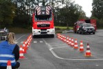 Die nächste Station war am Busbahnhof am Schulzentrum aufgebaut. Dort galt es einen Hindernisparcours in einem Zeitlimit von viereinhalb Minuten mit der Drehleiter zu überwinden. Am Start ging es über drei Schlauchbrücken in eine Gasse, die aus Pylonen gebildet war. Die Gasse verengte sich auf wenige Zentimeter Platz links und rechts des Fahrzeugs und endete mit einer Kurve. Nur wenige Fahrer schafften, es ohne Fehler diese Gasse zu befahren. Als Nächstes mussten die Vorderräder des Fahrzeugs in einem Rechteck zum Stehen gebracht und anschließend die Drehleiter rückwärts so nahe wie möglich an ein Gestell herangefahren werden. Auf dem Weg zum Einparken musste so angehalten werden, dass der rechte Vorderreifen in einem kleinen Kreis zum Stehen kam. Beim Einparken in einem Zug galt es möglichst nahe und parallel zur Bordsteinkante zum Stehen zu kommen. Nach der Durchfahrt durch zwei Tonnen, deren lichtes Maß der Fahrer vom Führerhaus aus per Handzeichen angeben musste, war der Parcours beendet. Rangieren war nicht erlaubt.