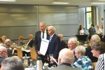 Anschließend begann der Präsident seine Gratulationstour durch die Reihen, wobei festgestellt werden konnte, dass die Geehrten hocherfreut die Ehrenbriefe entgegennahmen. Kurt Krautscheid nahm sich auch die Zeit, mit den Geehrten einige persönliche Worte zu wechseln.