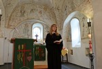 Die im Jahre 1385 gegründete Kapelle beherbergt Chorgemälde, die auf die erste Hälfte des 15. Jahrhunderts datiert werden. Sie zeigen Passionsszenen, Heiligendarstellungen und Szenen des Jüngsten Gerichts, die trotz mehrerer Jahrhunderte, die seit ihrer Entstehung vergingen, inklusive des 30-jährigen Krieges und zweier Weltkriege, gut erhalten sind. Vor dem Sprechen des Apostolischen Glaubensbekenntnisses erinnerte Pfarrerin Anja Jacobi daran, dass es bereits vor dem Bau der Kapelle entstand. "Wenn wir jetzt dieses alte Gebet zusammen sprechen, sind wir auch verbunden mit den Gläubigen, die die Matthäuskapelle im 14. Jahrhundert erbauten", sagte die Pfarrerin. In ihrer Predigt sprach Jacobi über das Gebot der Feindesliebe aus der Bergpredigt (Matthäus 5, Vers 38-48): Sie ermutigte dazu, sich einer Spirale aus Gewalt zu widersetzen. Hass und Wut seien einfach, im Vertrauen auf Gott zu leben, erfordere dagegen Mut und bringe Versöhnung. "Nicht nur Gewalt ist ansteckend, sondern auch Solidarität und Freundlichkeit", sagte sie.