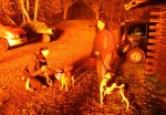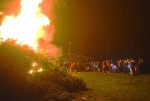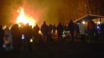 Angekommen an der Grillhütte, fraßen sich bereits die Flammen durch den riesigen Scheiterhaufen, bestehend aus Holzabfällen und Geäst, und tauchten den Vorplatz in gleißendes Licht. Die Flammen, die bis zu zehn Meter in den Himmel loderten, entwickelten eine gelb-orangefarbene leuchtende Illumination, die eine ganz spezielle Atmosphäre schuf. Fachmännisch war das Gehölz von Dirk Reifenberg, Vorsitzender des Fördervereins der Freiwilligen Feuerwehr Wölferlingen und selbst aktiver Feuerwehrmann, entfacht worden. Im Handumdrehen versammelten sich die Teilnehmer des Umzugs an der wärmenden Feuerquelle und bildeten einen Halbkreis darum. Die Kinder durften sich über frische Brezeln und heißen Kakao freuen, während die Erwachsenen Glühwein und andere Getränke zu sich nehmen konnten.