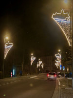 Dann erschien leibhaftig das Christkind und verlas seine Weihnachtsbotschaft, die mit viel Beifall bedacht wurde. Nun folgte der von allen sehnsüchtig erwarteten Countdowns, mit dem die in der gesamten Innenstadt angebrachte Festbeleuchtung in Gang gesetzt wurde. Bei "Null" gingen alle Lichter an, begleitet von vielen entzückten Ausrufen der Besucher, die voller Begeisterung die hell erleuchteten Straßen bewunderten, unter anderem auch in dem Teil der Bahnhofstraße, von der Post bis zum Kreisel am "Roundabout", der mit 27 leuchtenden Laternen ausgestattet war, die das Schloss Montabaur zum Motiv hatten.