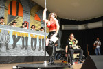 Als Höhepunkt des Abends wurde der Tanz an der Stange von "Leony" gefeiert, die zunächst mondän gekleidet die Bühne betrat und dann, verbunden mit akrobatischen Übungen an der Stange, einen ästhetischen Strip hinlegte, der wahre Begeisterungsstürme im Saal zur Folge hatte.