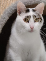Lucian liebt Aufmerksamkeit, ist neugierig und verträglich mit anderen Katzen. Ein gesicherter Balkon oder eine ausbruchsichere Terrasse wäre ideal, da Freigang aufgrund seiner Schwerhörigkeit nicht möglich ist. Spunk hatte bis zur Aufnahme in der Auffangstation Freigang, kommt aber auch in Wohnungshaltung gut zurecht.