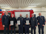 Auch feierliche Ereignisse prägten die Versammlung. Hendrik Nink wurde für 25 Jahre aktive Mitgliedschaft mit dem silbernen Feuerwehrehrenzeichen ausgezeichnet und zum Löschmeister befördert. Florian Eiser erhielt den Titel Oberlöschmeister, während Phil Haubrich als neues Mitglied verpflichtet wurde.