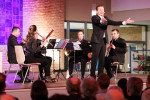 Das abendliche Konzert eröffnete Pfarrerin Monika Christ mit den Worten: "Wir wollen den Menschen ihre Geschichte und damit auch ihre Würde zurückgeben." Die musikalische Darbietung umfasste Werke von Komponisten, die in Theresienstadt tätig waren. Die Stücke sind geprägt von intensiven Klängen, die von Opus 45 eindrucksvoll interpretiert wurden. Roman Knižka las eindringlich Texte von Häftlingen, die das Leid und den Mut der Gefangenen schilderten.