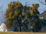 Im Winter rücken die Misteln dem Beobachter wieder ganz besonders ins Blickfeld. Die Blätter der meisten Apfelbäume sind abgefallen und schon geraten die mehr oder weniger stark vorhandenen Kugeln ins Auge. Häufig ist der Besatz so stark, dass meist die obere Kronenhälfte optisch geschlossen erscheint. Diese Partien sind dann bereits für die Obstproduktion verloren, oftmals verabschiedet sich der Baum wenige Jahre später komplett aus der Produktion und stirbt ab. Wer also weiterhin den Streuobstbau als ökologischen Baustein und Hotspot der Artenvielfalt aber auch als Obstlieferant weiter nutzen möchte, sollte zielgerichtet die Mistel unabhängig von der Jahreszeit ausschneiden. Die "blattlose" Zeit eignet sich aus verschiedenen Gründen natürlich am besten dazu. Die Mistel steht nach der Bundesartenschutzverordnung unter keinem besonderen Schutz. (PM)