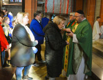 Er hatte auch noch ein sensationelles Angebot für diejenigen zur Hand, die an Aschermittwoch einen solch dicken Kopf gehabt haben, dass sie damit durch keine Kirchentür mehr gekommen wären: Er werde an Aschermittwoch von 10.00 Uhr bis 18.00 Uhr am Eingang beim EKZ Hüter stehen, um dort das “Aschekreuz to go“ zu verteilen. Für diejenigen, die es nicht wissen, bedeutet das Aschenkreuz auf der Stirn, dass die Gläubigen damit, öffentlich ihre Bereitschaft zur Umkehr und Buße nach Karneval zu erkennen geben. Nach dieser Ankündigung brandete erneut großer Beifall durch die Kirche. Pfarrer bekannte sich auch zu seinem Lieblingslied “Trink´doch eene mit, stell dich net su aan“, dessen Text genau das ausdrückt, was er sich so sehr wünscht, nämlich Geselligkeit und Zusammenhalt in der Gemeinschaft. Passend dazu stimmte der Organist eine Sequenz des Liedes an.