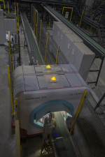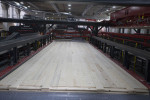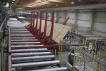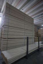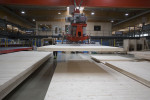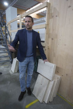 Vertriebsleiter Rüdiger Koch und Jendrik Graß, Leiter der Arbeitsvorbereitung bei van Roje erläuterten das Firmenkonzept, das immer darauf abzielt, die Wertschöpfungskette um Holz zu erweitern. Stämme werden im Werk komplett verarbeitet, auch die Seitenware. Der Stolz der Firma ist die kreuzweise Verleimung von Holzlamellen in verschiedenen Stärken für einen kompletten Baukörper. Je nach statischer Anforderung und Architektenplan wird digital schnell ein dreidimensionaler Ablaufplan erstellt. Die Sperrholzplatten werden maßgenau gefertigt und mit präzisen Aussparungen für Fenster, Steckdosen und anderes zurechtgesägt. Die Arbeitszeiten auf der Baustelle sind dadurch deutlich kürzer.