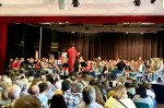 Ein besonderer Programmpunkt war der Auftritt des Musik-Kids Orchesters. Rund 100 Kinder aus verschiedenen Musikvereinen musizierten gemeinsam. Unter der Leitung von Christopher Horn begeisterten die jungen Musiker das Publikum nicht nur musikalisch, sondern auch mit ihren passenden Kostümen zu den Musikstücken.