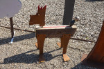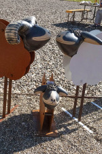 Im Außengelände herrschte das Motto "Altes neu in Wert setzen". Verwirklicht wurde das Thema in beeindruckenden Skulpturen aus Altholz und Altmetall und in fahrbaren Schätzchen wie VW Käfer oder die 2 CV-Ente. Lebensgroße Tiere aus Keramik mit Metallkörper und -beinen zieren den Garten ebenso wie Stelen vom Steinmetz und Steinbildhauer. Auch Baumpfleger Daniel Wirges konnte sein Publikum überzeugen.
