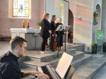 Die wundervoll aufeinander abgestimmten Darbietungen der Sängerinnen Theresa und Sandra Burth sowie Ann-Kathrin Theis zeigten die dramatische Abfolge des Kreuzweges auf. Wunderschön die zwischenzeitliche Begleitung von Sandra Burth mit der Gitarre und Theresa Burth mit der Querflöte. Ann-Kathrin Theis stellte die einzelnen Stationen vor. Niemand von den Besuchern, der nicht gefesselt und tief beeindruckt war.