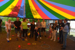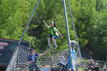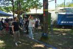 Die Weitläufigkeit und Größe des Stöffel-Parks begünstigten die Veranstaltung, da ausreichend Platz vorhanden war, um auch im größeren Rahmen viele Attraktionen aufzubauen, ohne dass man sich dabei in die Quere kam. Tatsächlich war ein sehr großes Angebot vorhanden, so dass vom Kleinkind bis zu Jugendlichen alle Altersgruppen beschäftigt werden konnten. Da alle Spiele von Mitarbeitern der Jugendzentren betreut worden, die darauf achteten, dass stets die Sicherheit der Kinder im Vordergrund stand, konnten die Eltern entspannt dem Treiben ihrer Zöglinge zuschauen. Die Veranstalter legten großen Wert auf Mitmachaktionen, bei denen die Kinder auch ihre Geschicklichkeit im Wettbewerb messen konnten. Aber auch “Einzelkämpfer“ hatten ihren Spaß – so zum Beispiel an einer Seilrutsche, die von einem Förderband in etwa zehn Meter Höhe auf etwa 30 Meter Länge in die Tiefe führte. Besonders mutige Kinder wurden in der Höhe von Beteuern mehrfach gesichert, bevor sie, ohne Netz und doppelten Boden, nach unten rutschten. Unter dem Seil hatten sich viele Zuschauer eingefunden, die den mutigen Kindern großen Beifall spendeten, wenn sie unten heil angekommen waren.