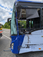 Zweite Aktualisierung: B 414 nach Kollision zwischen Bus und Lkw wieder freigegeben