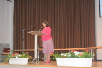 Alexandra Marzi begrüßte die Gäste der Veranstaltung überaus herzlich, denn außer den Männern und Frauen der Feuerwehreinheiten waren mehrere Kommunalpolitiker und Vertreter der Feuerwehrverbände erschienen. Wörtlich drückte sie ihre Begeisterung aus: "Der Blick von hier oben aus in den Saal ist einfach herrlich, wenn man so viele Menschen im Saal sehen kann."