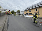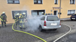 Rotenhain. Am Samstag, (24. Mai), gegen 11.35 Uhr wurden die Feuerwehren aus Stockum-Püschen, Bellingen, Langenhahn und Hintermühlen zu einem brennenden Pkw in der Hauptstraße von Rotenhain alarmiert. Der Wagen stand direkt vor einem Mehrfamilienhaus in Vollbrand, als die ersten Einsatzkräfte eintrafen. Die Bewohner des Hauses hatten dieses bereits verlassen. Mehrere Angriffstrupps unter Atemschutz setzten Strahlrohre ein, um die Flammen zu bekämpfen. Da das Feuer unter dem Fahrzeug immer wieder aufflammte, wurde zusätzlich ein Schaumrohr eingesetzt, um das Feuer endgültig zu ersticken.