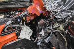 Die zuerst eintreffenden Einsatzkräfte erkundeten die unübersichtliche Einsatzstelle und begannen mit der Vorbereitung der technischen Rettung. In einem Fahrzeug fanden die Feuerwehrleute eine schwerstverletzte Frau vor. Sie war im Fahrzeug eingeklemmt. Mittels technischem Gerät konnte die Schwerstverletzte, gemeinsam mit dem zwischenzeitlich eingetroffenen Rettungsdienst, gerettet werden. Die Einsatzleitung ließ im Verlauf der ersten Maßnahmen den Löschzug Hachenburg nachalarmieren.